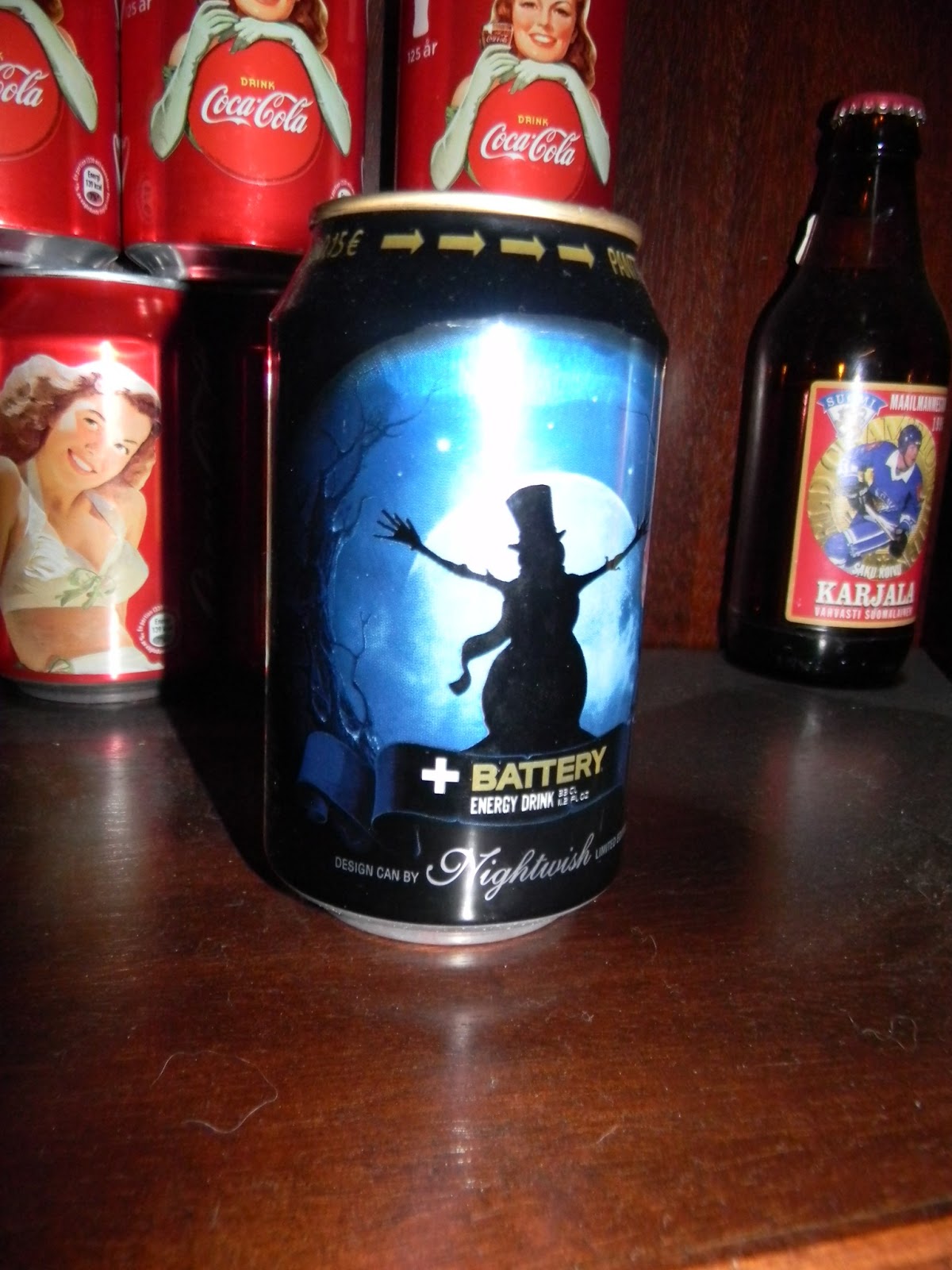 I collect special soda-cans. This is a battery-can designed by Nightwish. It reminds me of Tim Burtons cartoons.